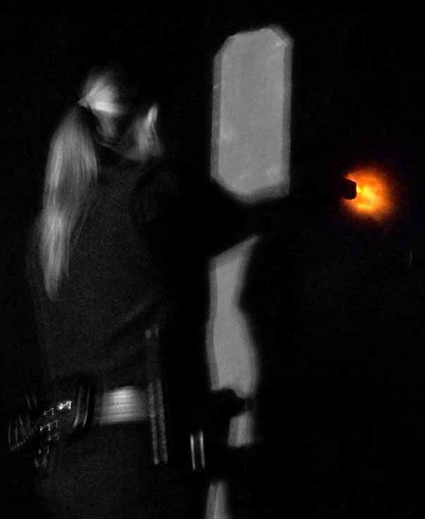 Inv. Kara Longoria writes: “This is a photo taken of me on our department firing range. We were having a ‘night shoot’ for firearms training.”