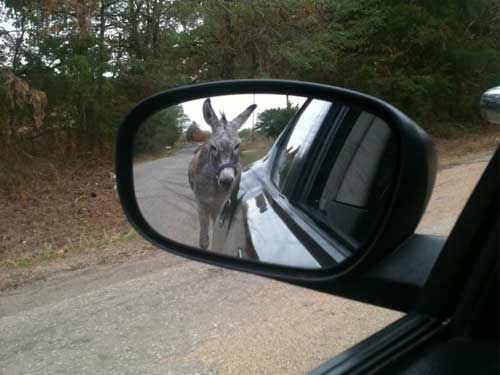 This week’s photo comes from Chief Serena Booth of the Point, Texas PD, who wrote: “I had pulled over to call dispatch when I looked in my sideview and saw this face. I literally laughed out loud!”