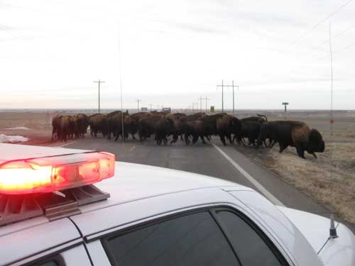 This week’s photo comes from Police1 member Adrian Tucker, who writes: “A small herd of Kansas buffalo was being driven to better pastures north of Syracuse. Myself, Deputy Adrian Tucker and Deputy Alex Gentry had to stop north and south bound traffic to let the herd cross the highway. Just part of the daily job here at the Hamilton County Sheriff’s Office in southwest Kansas.”