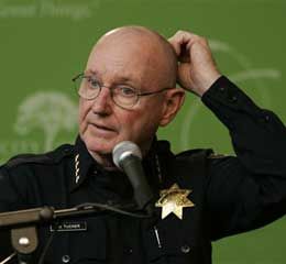 ![]() Oakland Police Chief Wayne Tucker speaks during a news conference in Oakland, Calif. regarding former transit officer, Johannes Mehserle, 27, who has been charged with murder in the shooting death of an unarmed man, 22-year-old Oscar Grant. (AP Photo) |