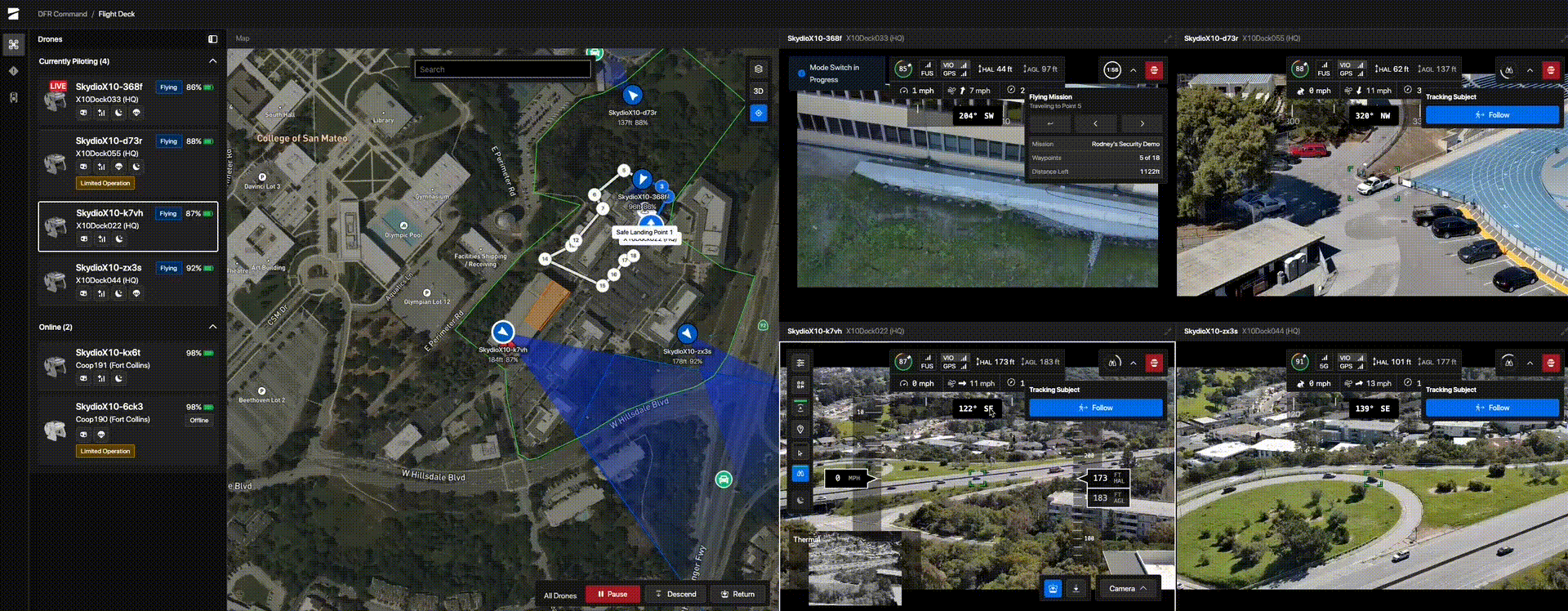 These features have been updated for multi-drone operations to ensure that in the rare event something goes wrong during an operation, the system intelligently and safely responds without increasing pilot workload.