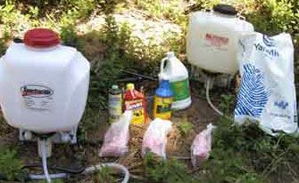 ![]() Two five-gallon backpack sprayers used to spray pesticides directly on the buds of marijuana plants to keep the insects down were found July 28, 2008 at Longmeadow Creek in Tulare County near Johnsondale, Calif. (Photo AP/California Department of Fish and Game) |