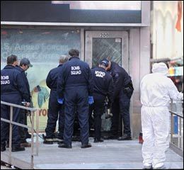 Members of the police department’s bomb squad and fire officials gathered outside the station in the early morning darkness, and police cars and yellow tape blocked drivers -- most of them behind the wheels of taxicabs -- from entering one of the world’s busiest crossroads. Police began allowing some traffic through around the start of rush hour.