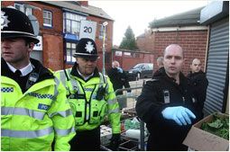 ![]() British forensic police officers search through boxes outside a grocery store in Birmingham, England Wednesday after British counter-terrorism police arrested eight men in an alleged kidnapping plot. (AP Photo/ Simon Dawson) |