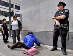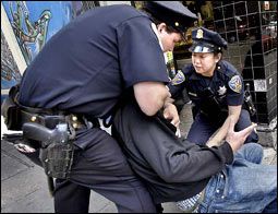 The man shakes his head, and the three engage in a violent little dance on the corner of Leavenworth and Turk for a few moments. The officer releases his grip on the man’s throat, and the man spits a small white pill onto the sidewalk.