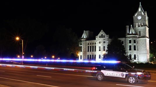 During some downtime, McPherson (Kan.) Police Officer Ryan Bauer and Officer Aaron Humig snapped this cool photo in front of their county courthouse.