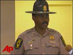 ![]() Sgt. Bill Emery speaks to the press about the suspect who shot a deputy in the face, and took hostages in Arcola, Ill. |
