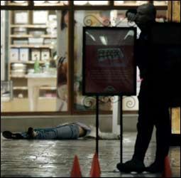 ![]() A police officer stands nearby as a body of a woman lies on the floor, Feb. 12, 2007, at Trolley Square Mall. (AP Photo/Douglas C. Pizac) |