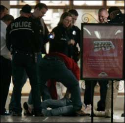 ![]() Police officers examine a body on the floor, Feb. 12, 2007, at Trolley Square Mall. (AP Photo/Douglas C. Pizac) |