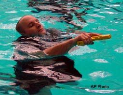Of course, it’s not just a duty belt that weighs you down. If an officer weighs 230 lbs., and wearing all of his/her assigned gear then add an approximately 18 lbs., with 20%-30% restricted movement and loss of flexibility. Once in the water and the uniform is submerged, the officer will have anywhere from 30-40 lbs. of added weight, or more based on the type of construction of the vest and duty gear. Knowing how to maneuver with this added bulk and restriction is key to water safety training. |