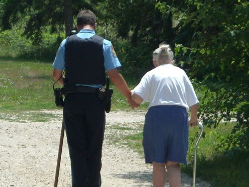 This week’s photo comes from Lieutenant Ken Neilsen of the McHenry County Sheriff’s Office in Woodstock, Ill. Lt. Keilsen writes, “This is one of our Deputies helping an elderly widow back to her house after she had been standing at the end of her driveway attempting to flag down passing cars for assistance.”