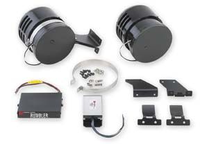 The Rumbler emits low-frequency tones from coffee-can sized subwoofers installed in the squad’s wheel wells. These lower tones duplicate the primary siren’s sound, but 10 decibels lower.