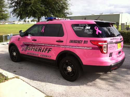 In honor of breast cancer awareness month, this week’s photo of the week winner is school resource deputy Joseph Rodgers of the Seminole County Sheriff’s Office. Pictured is a Seminole County police vehicle, painted hot pink with breast cancer awareness ribbon decals.